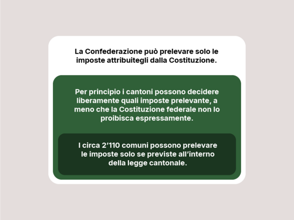 - La Constitution fédérale définit aussi les impôts que les cantons n’ont pas le droit de percevoir. Car en principe, les cantons peuvent choisir librement les impôts qu’ils veulent percevoir.